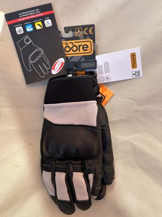 Guantes de moto de la marca Moore, talla L. Cuentan con un diseño homologado. - Color negro. - Cierre ajustable.