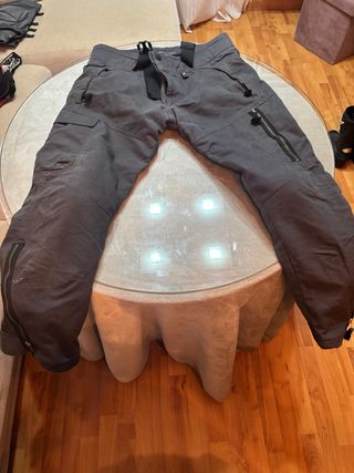 Pantalón de motorista en color gris oscuro, talla XXL. Diseñado para ofrecer comodidad y seguridad en la carretera. - Tejido resistente. - Cremalleras en los bolsillos. - Protecciones integradas.
