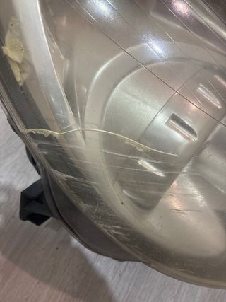 Faro delantero para Opel Corsa. Pieza de repuesto. - Lente transparente con marcas de uso. - Carcasa negra.