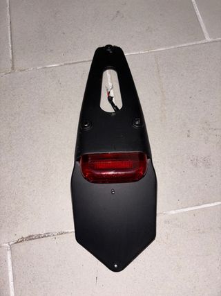 Portamatriculas negro para moto de 50cc. Incluye luz trasera roja. - Material: Plástico negro. - Color de la luz: Rojo. - Diseño específico para motos de 50cc. - Con menos de un mes de uso
