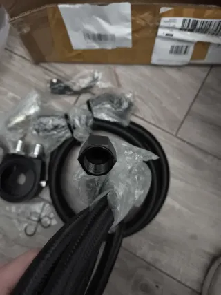 Kit para la reubicación del filtro de aceite del motor. Incluye manguera y adaptadores. - Placa adaptadora para el filtro de aceite. - Manguera trenzada de alta presión. - Conectores y juntas.