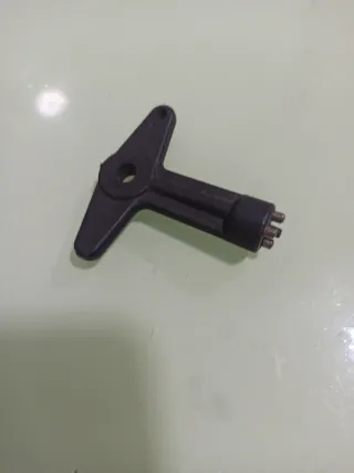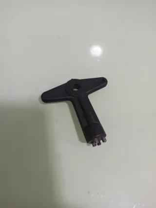 Llave antirrobo para ruedas de vehículos Renault. Pieza de plástico negro con un diseño en forma de T y un orificio central. - Diseño en T. - Material plástico negro.
