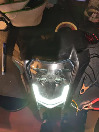 Careta con iluminación LED para moto KTM. - Diseño moderno y deportivo. - Iluminación potente y eficiente. -luz principipal desconozco funcionamiento