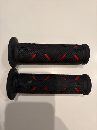 Puños de moto Progrip en color negro con detalles rojos de 22 y 24cm(para caña acelerador) - Diseño con textura para un mejor agarre. - Logo de la marca integrado. - Número 717 grabado en un extremo.
