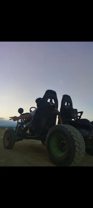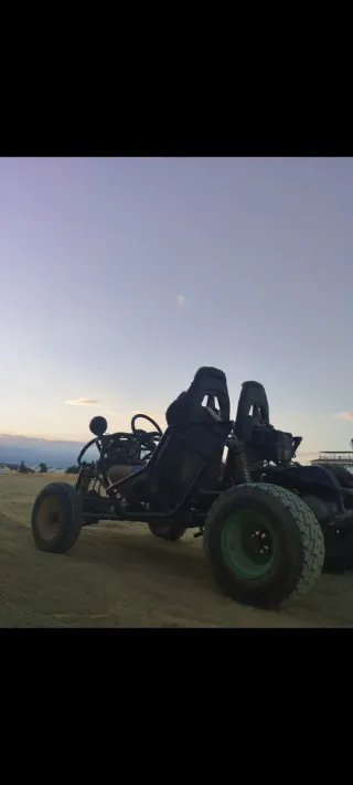Buggy de dos plazas listo para la aventura. Ideal para terrenos irregulares. Solo hay que poner el cable de marcha atrás, se entrega sin batería . Lleva parado desde verano , posiblemente haya que limpiar carburador - Asientos deportivos.