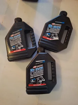 aceite de suspensión Maxima Plush. Dos botellas de 3wt. Una botella de 7wt. - Cada botella es de 1 litro (33.8 fl. oz.). - Fórmula Zero Fade. - Alta Performance. Sin abrir.