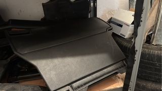 Bandeja para el maletero de un Clio. Fabricada en material textil negro. - Diseño con relieve. - Incluye cuerdas de sujeción.