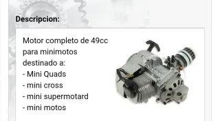 Motor completo de 49cc para minimotos. - Ideal para Mini Quads. - Apto para mini cross. - Perfecto para mini supermotard. - Compatible con mini motos.