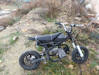 Minimoto de cross solo le falta la recámara trasera que cuesta 8 euros en AliExpress y el guardabarros delantero que cuesta 6 euros y ponerla a punto