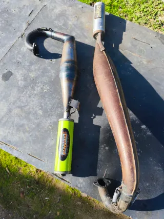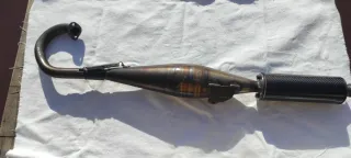 Escape de competición para minimoto, BZM y POLINI. Está usado, con señales de uso visibles, pero en buen estado general. - Marca: BZM y POLINI - Tipo: Escape de competición - Para minimoto