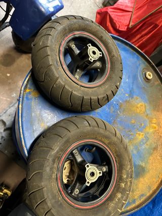 juego ruedas Polini 910 de 5 pulgadas para minimoto, con neumáticos y rodamientos 👍🏻 prácticamente nuevas.