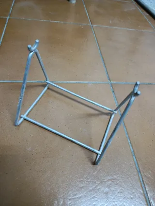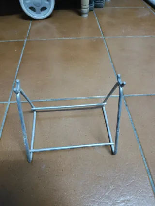 Soporte metálico para minimotos. - Diseño triangular con soportes superiores.