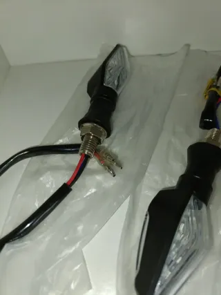 Juego de intermitentes universales para moto o ciclomotor. Diseño moderno y funcional. Preguntar para más información SIN HOMOLOGACIÓN - Carcasa negra. - Lente transparente. - Cableado incluido.
