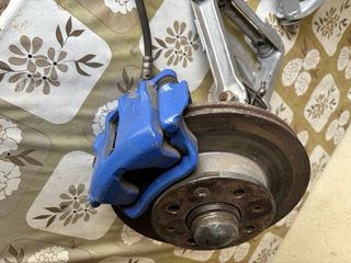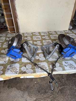 Manguetas y brazos de suspensión de SEAT 600 con discos y pinzas de freno de fiat uno turbo con pastillas nuevas en perfecto estado