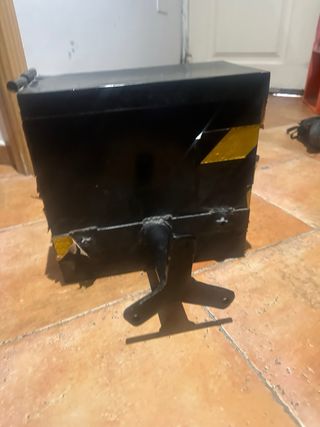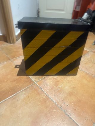 Soporte para bidón, diseñado para vehículos 4x4. Presenta un diseño de franjas amarillas y negras. - Construcción robusta. - Acabado en negro y amarillo.