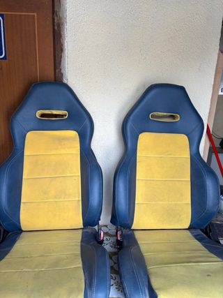 Se venden asientos deportivos en color azul y amarillo. - Diseño ergonómico. - Tapicería de tela y polipiel. Para coche clasico estaban puestos en SEAT 600