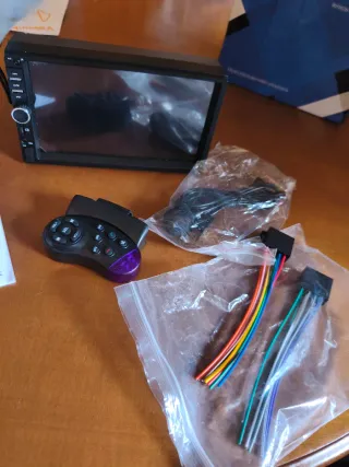Pantalla multimedia para coche con funciones de MP5 y CarPlay. Nueva, sin estrenar. Embalaje original - Compatible con CarPlay (cableado e inalámbrico). - Reproducción de música, imágenes y vídeo. - Incluye manual de operación y mando a distancia. Radio, micrófono, mando de control para volante.
