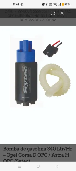 Bomba de gasolina Sytec de alto flujo para Opel Astra/corsa opc. 340lt/h