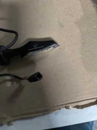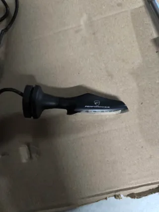 Intermitentes de la marca Ducati Performance, instalados en Monster 1200 2017. Diseño aerodinámico y elegante. - Logo de Ducati grabado. - Acabado en negro mate.