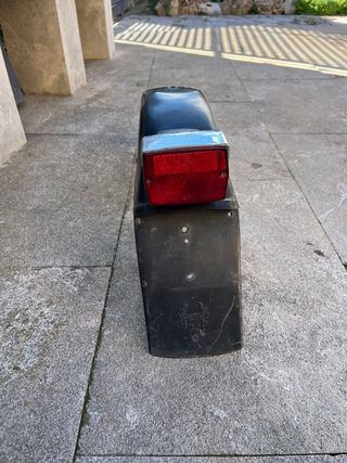 Guardabarros trasero para Derbi FDX. Pieza de plástico negro con el piloto trasero rojo incorporado. - Guardabarros de plástico negro. - Piloto trasero rojo.