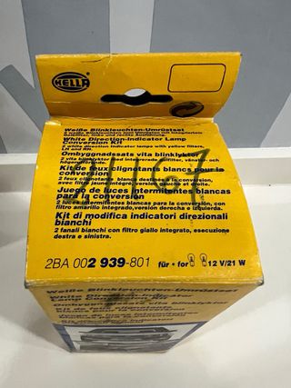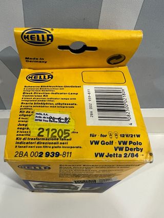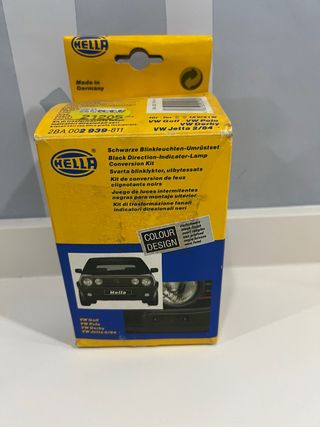 Kit de conversión de intermitentes blancos originales Hella. - Diseñado para modelos VW Golf, VW Polo, VW Derby y VW Jetta 2/84. - Incluye instrucciones de montaje. Para Golf 2 tiene que ser paragolpes estrecho.