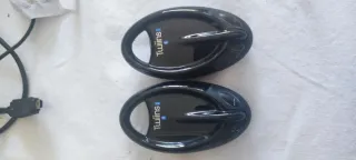 Par de intercomunicadores Twins en color negro. - Diseño ovalado y brillante. - Asa integrada para fácil agarre. - Incluye cable de conexión. - Selector intercomunicador vía IR para manillar