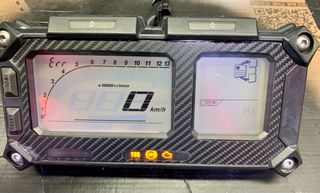 Marcador digital para Yamaha Tracer 900, 2015-2016. Con mas de 155 000 km. - Pantalla LCD con tacómetro y velocímetro. - Indicadores de TCS, ABS y fallo motor. - Muestra temperatura (C.TEMP). - Diseño con detalles en fibra de carbono.