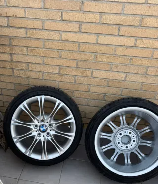 Juego de llantas para BMW 18 Serie 3. - Diseño deportivo. - Acabado plateado. Recién pintadas se tiene que cambiar 2 neumáticos los delanteros están al 80\100 los traseros al 40/100 acepto cambio con llantas de BMW e60 en 18 si es posible la misma característica a mí no me van es el buje más grande