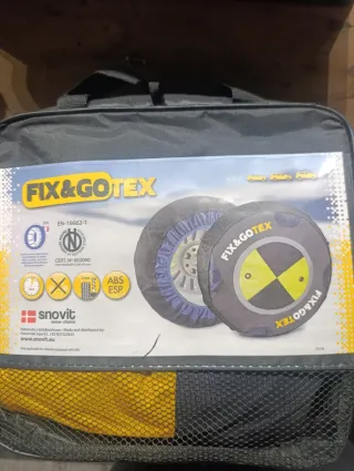 Fundas textiles para neumáticos FIX&GOTEX, homologadas según la norma EN-16662-1. - Certificación TÜV Austria. - Certificado N° 002000. - Clase 0/2 mm. - Compatibles con ABS y ESP. - Fabricadas por Snovit.