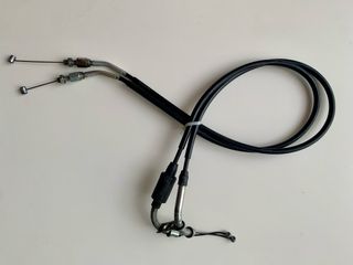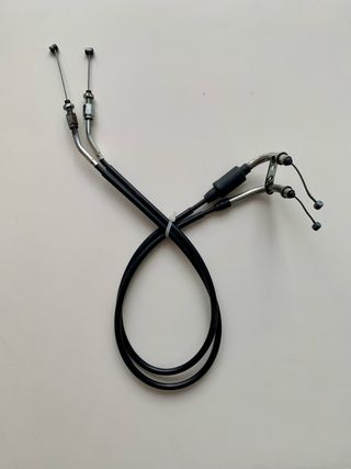 Juego de cables de acelerador para moto Suzuki GSX R. Están en buen estado y listos para usar. Cable de gas, tiro y retorno. Original. Suzuki GSX R. 600cc, 750cc. modelos a partir del 2011. Modelos L0, L1, L2, L3, L4, L5, L6, L7, L8. - Para modelos Suzuki L - Incluye dos cables. - Color negro