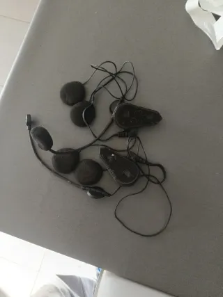 Set de dos intercomunicadores para casco de moto. - Incluye dos unidades de intercomunicador. - Diseñados para facilitar la comunicación durante la conducción. - Cada unidad cuenta con auriculares y micrófono.