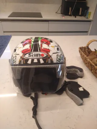 Casco de moto SHIRO HELMETS con diseño llamativo. - Talla Y-M. - Circunferencia de cabeza: 51-52 cm. - Incluye visera transparente.