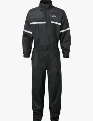 Mono impermeable de color negro, ideal para protegerse de la lluvia. - Diseño de una pieza. - Bandas reflectantes en torso y mangas. - Para alturas entre 160y 170