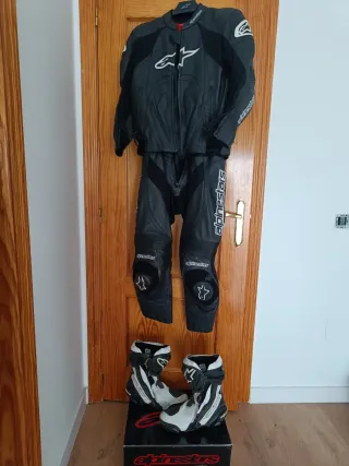 Mono de dos piezas ALPINESTAR, el pack incluye lo siguiente: -Chaqueta ALPINESTARS GP FORCE talla 40 con espaldera incluida y forro interior cortavientos -Pantalones ALPINESTAR MISSILE V3 Talla 48 -Botas Alpinestars SMX-S Negras / Blancas talla 43 -Guantes de verano Alpinestars SMX-1 Air V2 Negros talla XL -Guantes invierno Alpinestars SP-365 talla XL