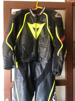 Mono de moto Dainese Laguna Seca de dos piezas, talla 48, lo he usado en ocasiones contadas, porque se me quedo pequeño y desde entonces lo tengo guardado en el armario, el uso que ha tenido han sido 4 o 5 salidas, esta super nuevo