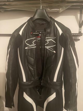 Traje de moto de cuero Spyke, en perfecto estado, se a usado solo una vez. Lleva una espaldera extra dentro mejor que la original. - Mono de dos piezas. - Protecciones en hombros, codos y rodillas. - Cremalleras y cierres en buen estado.