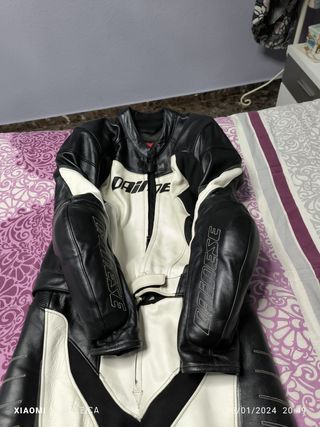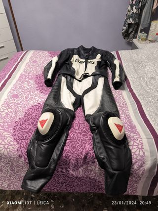 Mono de cuero Dainese T54 Laguna Seca, una puesta en circuito y dos en calle está impecable, súper cómodo y cuero de alta calidad, modelo de dos piezas. - Diseño deportivo en color negro con detalles blancos. - Cierre frontal con cremallera lo vendo por haberme hecho uno personalizado y no tener espacio para tanto chisme