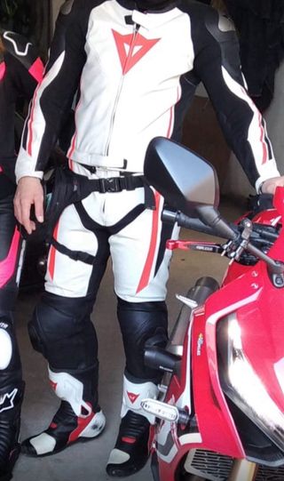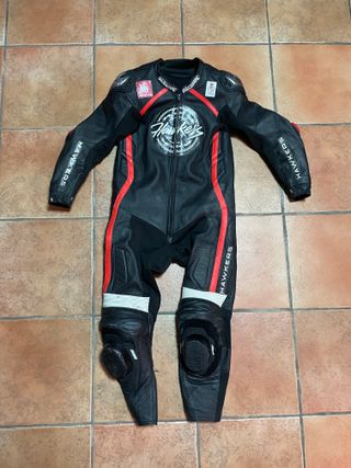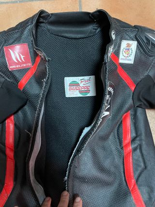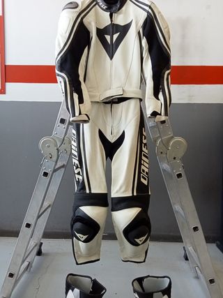 - Mono de 2 piezas unidas por una resistente cremallera - Talla 52 (Mido 1,70 y peso 70kg) - Protecciones rígidas en rodillas, tibias, hombros y antebrazos. - Espaldera aerodinámica en la parte posterior. - Como nuevo Se ha utilizado solo en tres ocasiones. Ninguna caída. Marcas muy leves en la protecciones de las rodillas (solo del transporte).