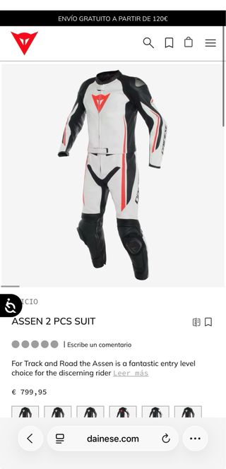 Mono de cuero Dainese Assen 2 PCS SUIT, ideal para carretera y circuito. Mono para moto 2 piezas - Diseño deportivo en blanco, negro y detalles en rojo. - Protección y comodidad para el motorista. Palabras clave: honda cbr yamaha Ducati bmw aprilia circuito