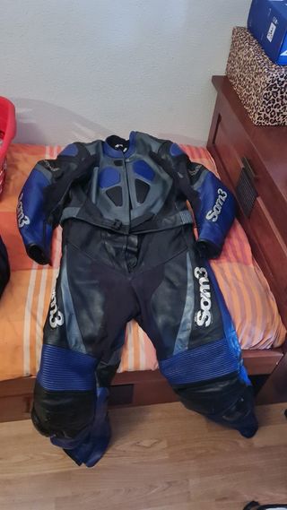 Mono moto 2 piezas unisex talla S (yo soy mujer y tengo en ropa normal 38-40). Puesto en 2 ocasiones la parte de arriba. Tiene todas las protecciones internas espaldera, coderas y hombreras. Medidas Chaqueta De sisa a sisa: 50cm Largo brazo: 65cm Pantalón Largo pierna: 91cm Cadera: 50cm cede algo porque lleva elastico