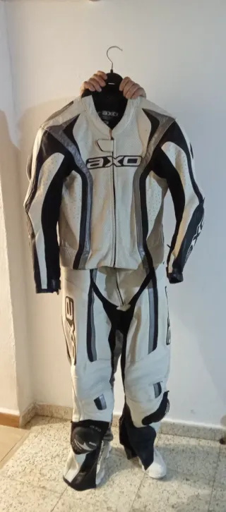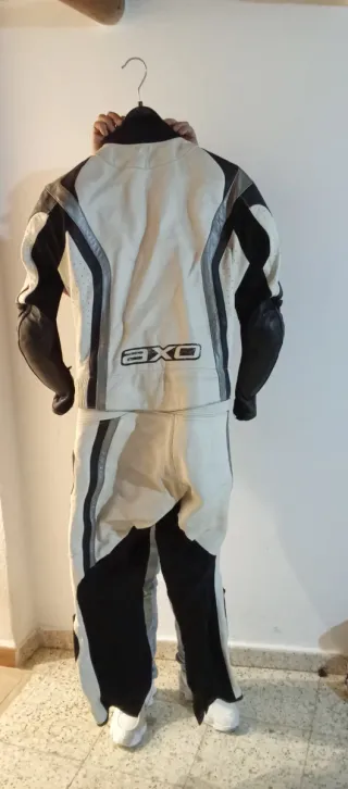Mono de cuero AXO, piezas desmontables unido por cremallera. protecciones antebrazos, coderas, espalda, hombros, rodillas. Poco uso, talla 56. Forro interior desmontable