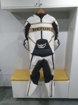 Mono berik titanium 2 piezas.Tallas xl en perfecto estado dos bolsillos interiores uno de elllos con cremallera ,sin arrastrones ,las protecciones de titanio tiene algún arañazo sin importación del propio uso.(se puede ver en las fotos)