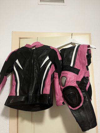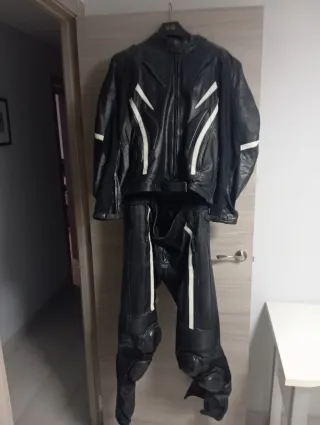 Se vende moto para moto Dainese, de dos piezas, talla 42, no tiene caídas. Se vende completo, no las piezas sueltas. Medidas: altura sobre 1,60 cm, peso sobre 60 kg. No hago envío por Wallapop. Precio:180€ el conjunto completo, gracias.