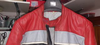 Chaqueta de moto Dainese Laguna Seca de cuero, roja y negra. Está en muy buen estado. Talla 48 - Diseño deportivo. - Cuero de alta calidad. - Protecciones en hombros, codos y espalda.