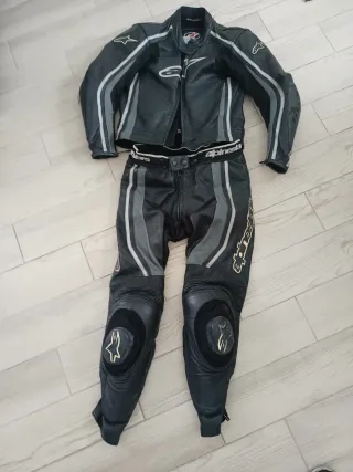 Chaqueta y pantalón de moto Alpinestars GP Force, en perfecto estado. Ideales para salidas en moto. Talla 50 ( yo mido 1,75 y peso 65 kg ) -Piel de primera calidad. -Protecciones en hombros, codos y rodillas. -Diseño deportivo y elegante. -Color negro y blanco.