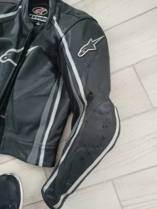 Mono de moto de cuero de la marca Alpinestars. Tiene rozaduras de una caída en pantalón y chaqueta,se ven en las fotos Regalo Botas usada alpinestar talla 42