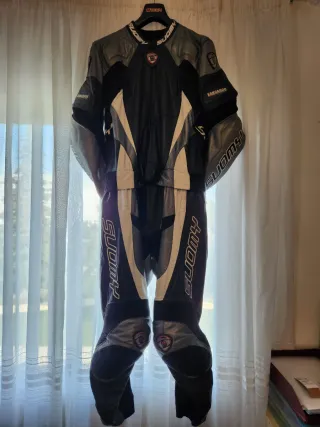 Mono de piel de canguro SUOMY para moto. - Mono de dos piezas. - Material: Piel de canguro. - Marca: SUOMY. - Sin un rasguño. -Talla 56