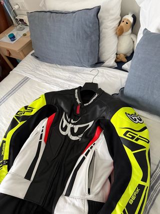 Mono completo de 2 partes. Talla 48, mido 175 y peso 68 kg. Aunque tiene sus años, se ha usado muy poco y está en muy buen estado. Preguntar cualquier duda. También vendo botas a juego (mirar en mi perfil) #dainese #spyke