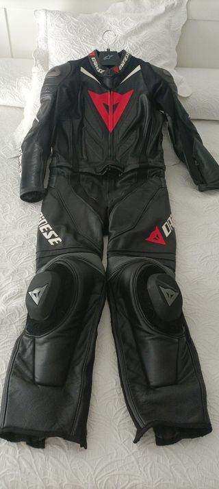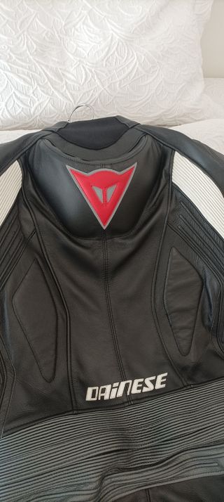 Traje de moto Dainese de una pieza, en excelentes condiciones. - Cuero de alta calidad. - Diseño deportivo. - Protecciones en hombros, codos y rodillas. - Incluye bolsa de transporte. - Solo usado una vez, ya que vendí la moto.