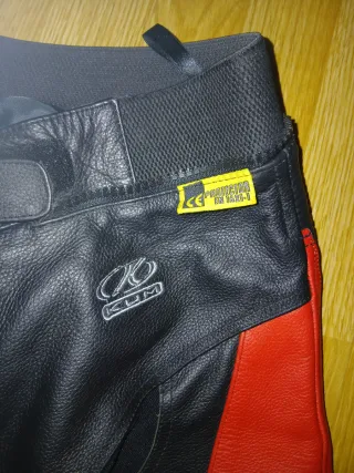 Mono de cuero para moto, diseñado para ofrecer protección y comodidad. - Color negro con detalles en rojo y plateado. - Material de cuero. - Cremalleras en los tobillos. - Sin roces , apenas 3 usos - Junto o por separado
